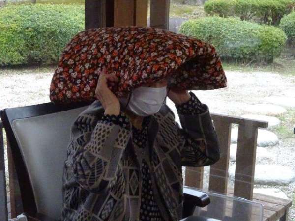湯船のお湯を抜いて、蓋を閉め隠れる