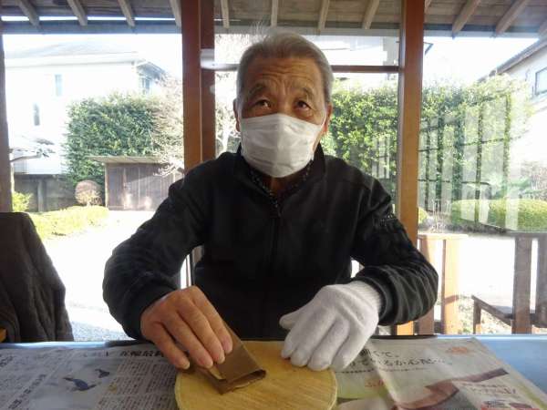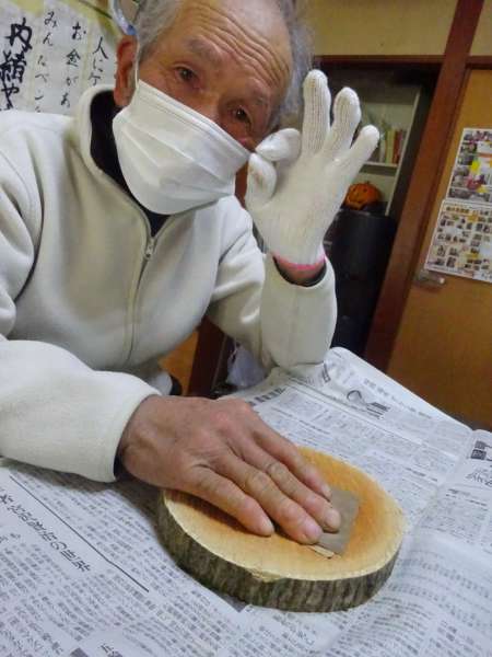 輪切りにした木をやすりで平らにして下さっていまするんるん (音符)るんるん (音符)