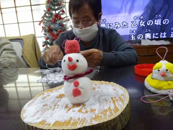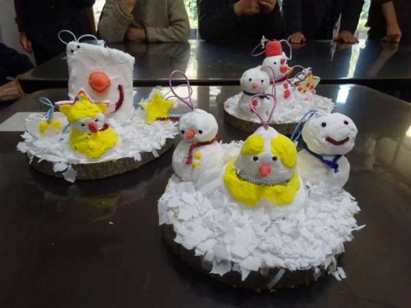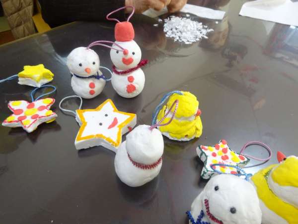 木にボンドを付け、以前作った雪だるまさんや、お星さまを飾りますぴかぴか (新しい)ぴかぴか (新しい)