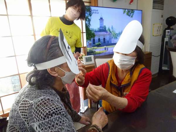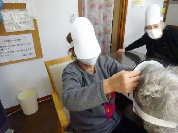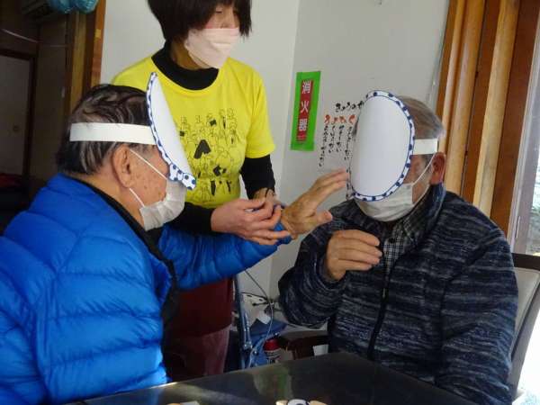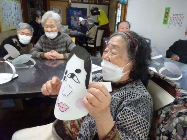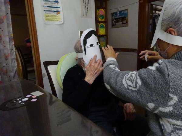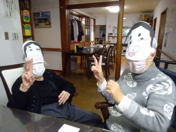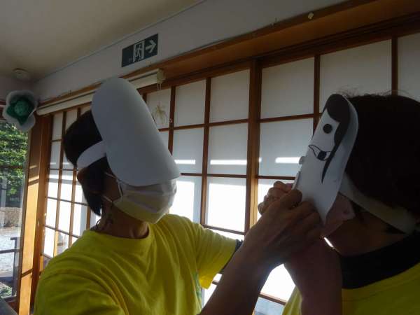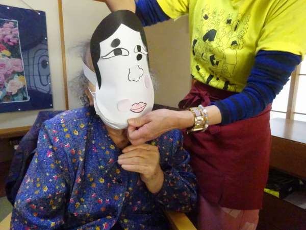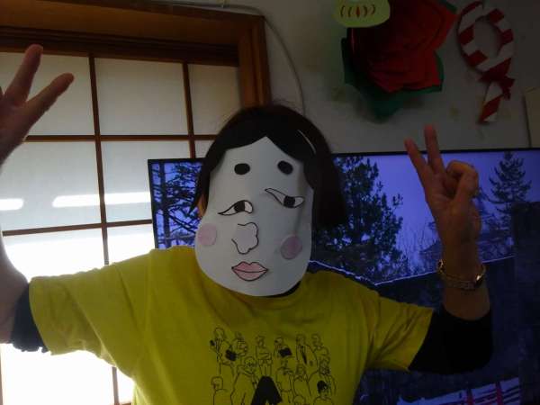 お面をかぶって・・・