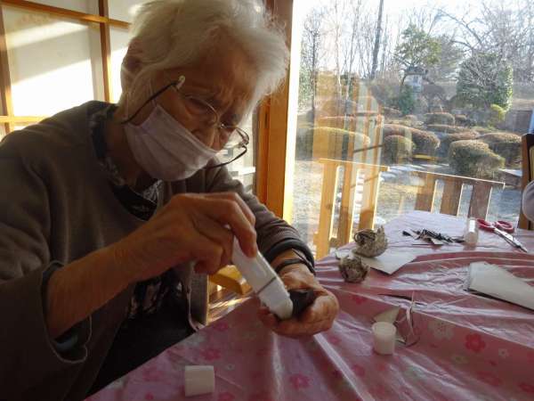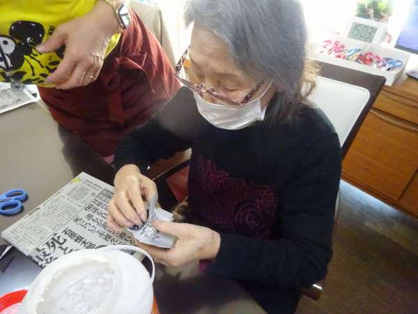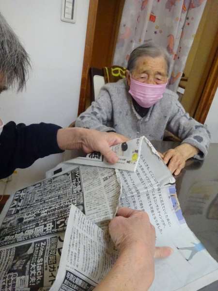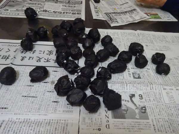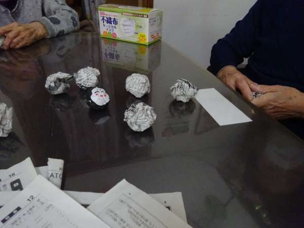 こちらでは・・・・先ほどの新聞紙を丸めます。