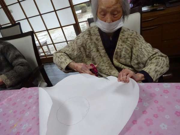何やら、模造紙を丸く切っているお母様方。