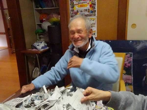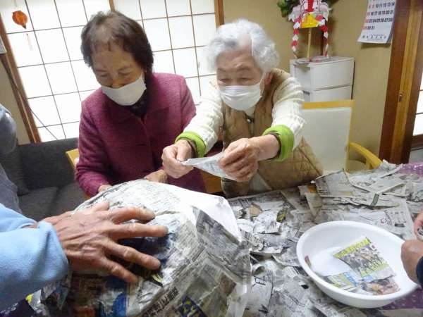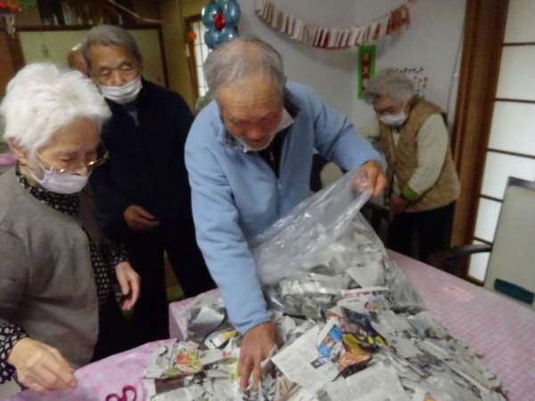 ちぎった新聞紙を・・・・