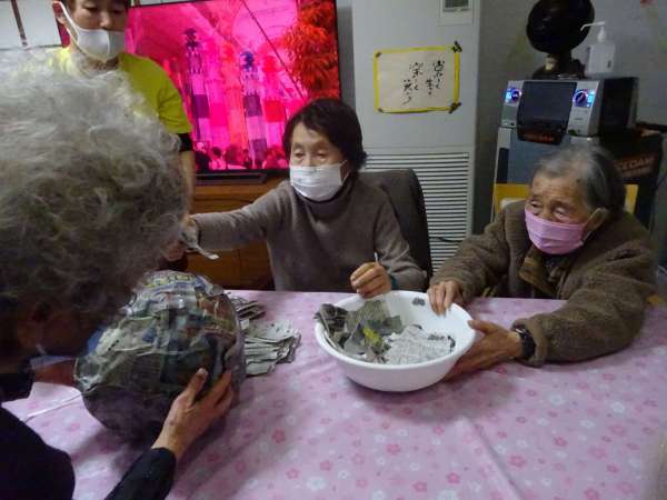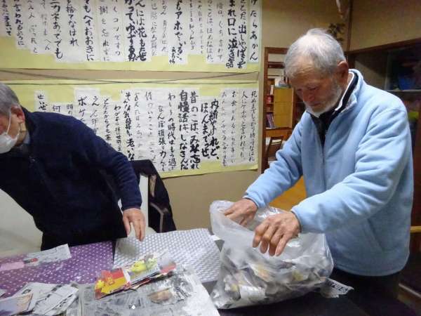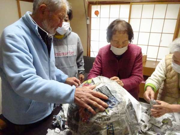 ちぎった新聞紙はまた使いますので、袋の中にきれいに片づけて頂きました。