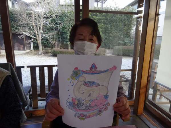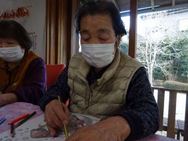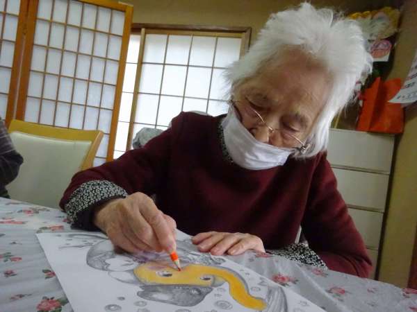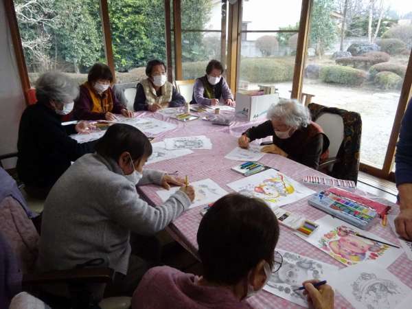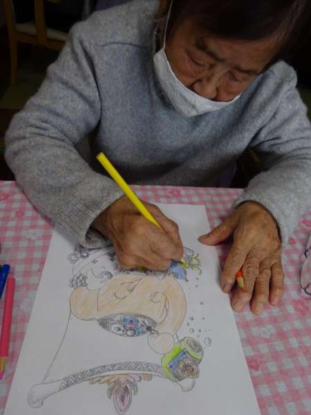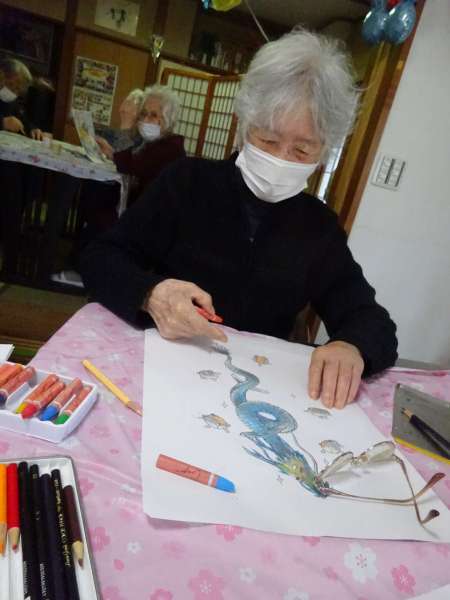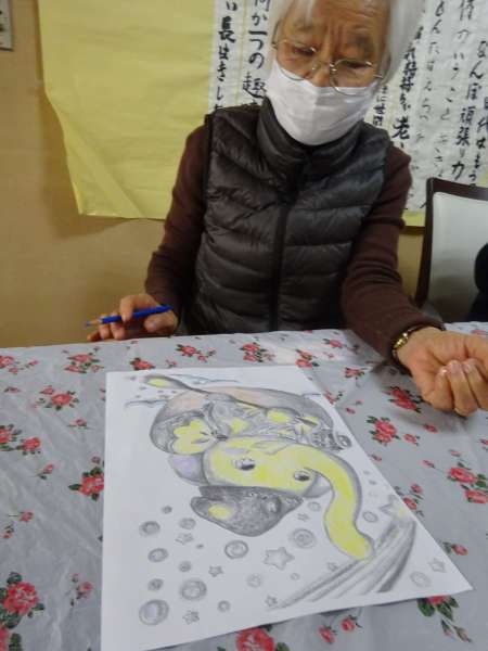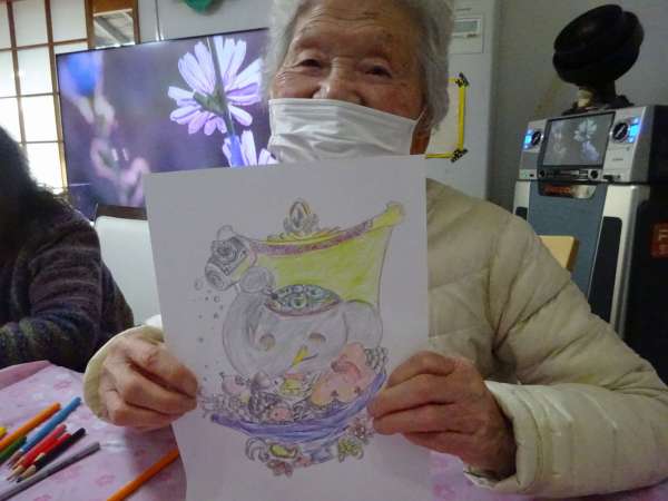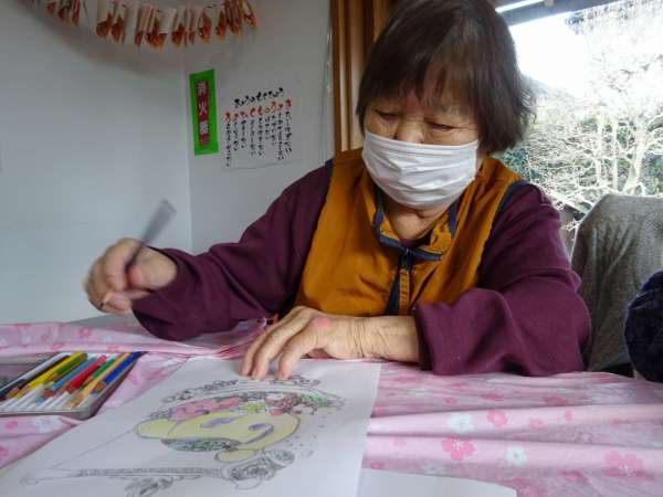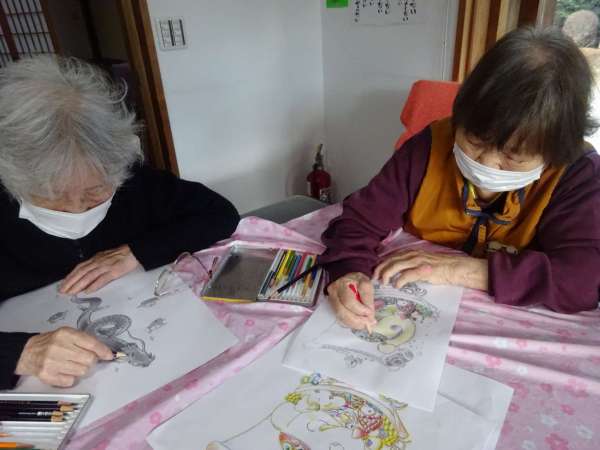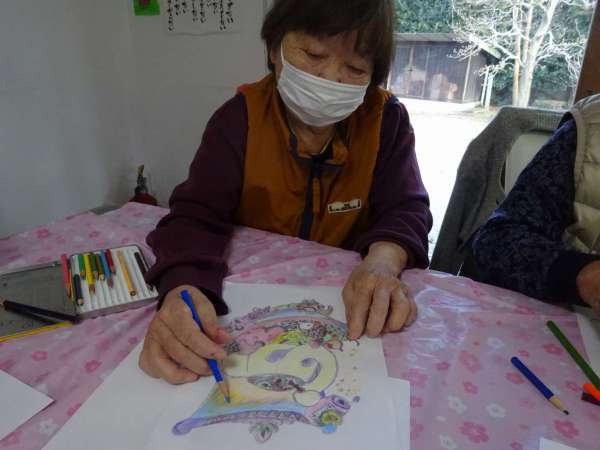 縁起の良い「塗り絵」楽しんでいただきました