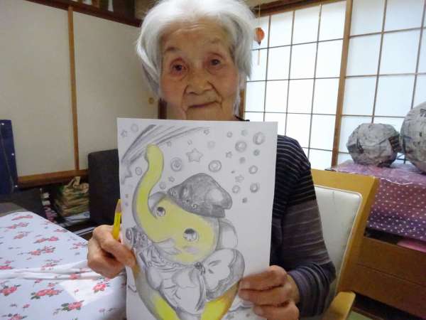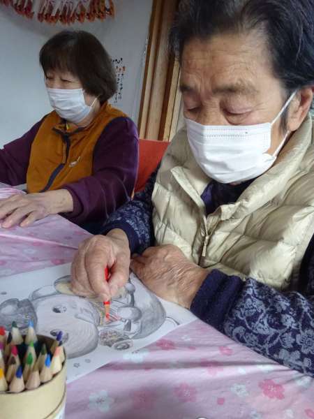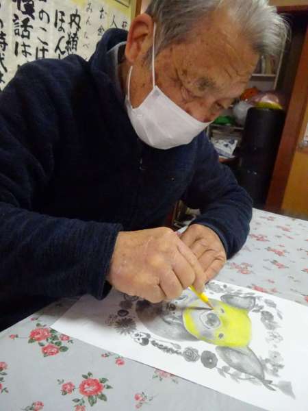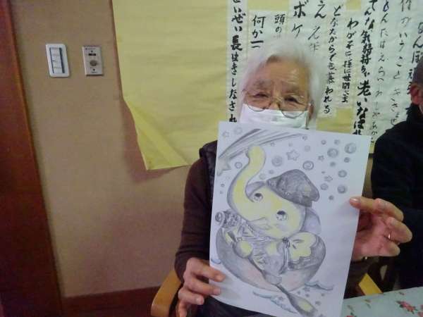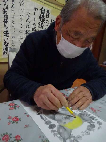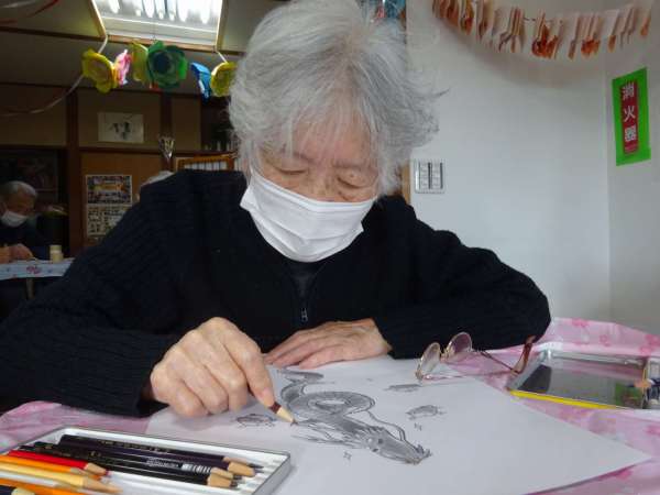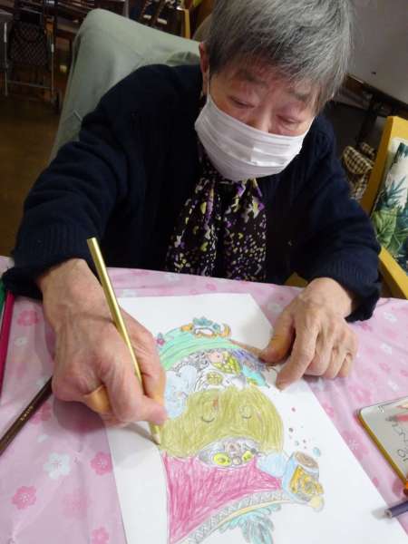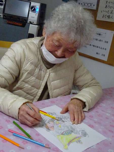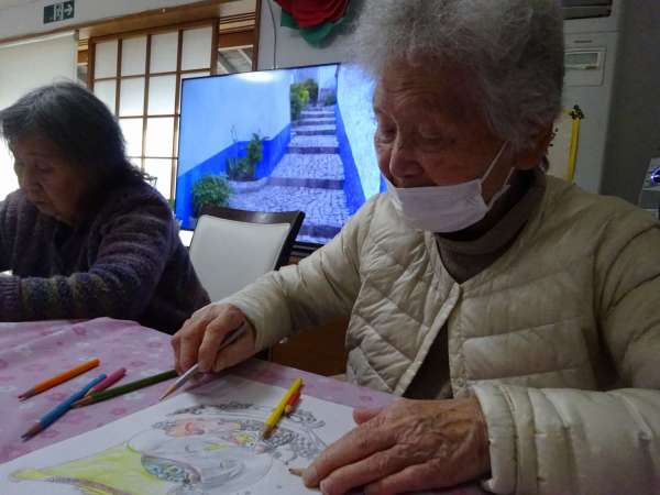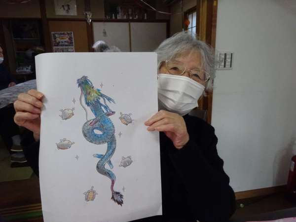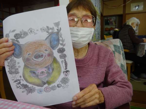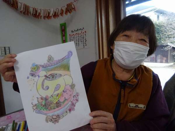 縁起の良い「塗り絵」楽しんでいただきました