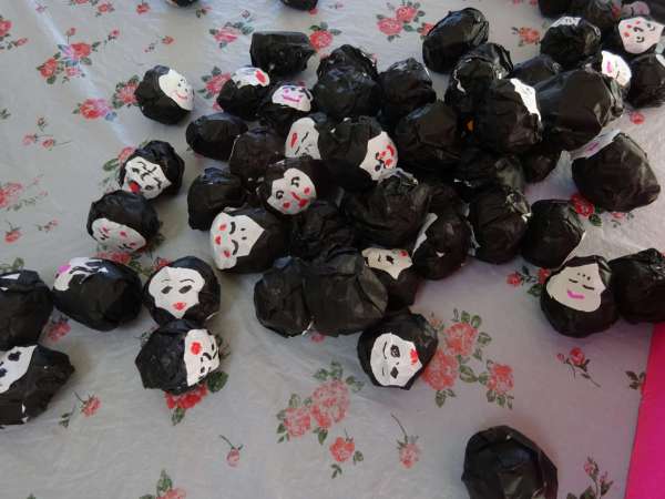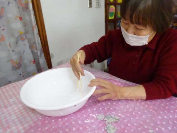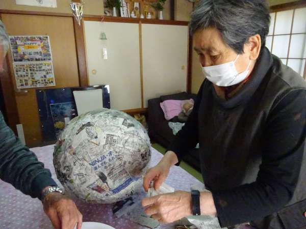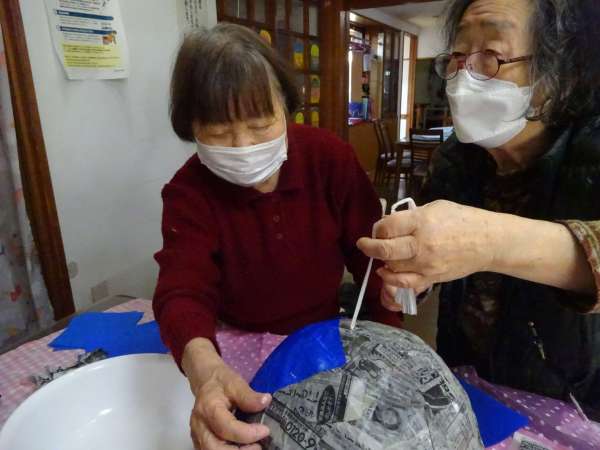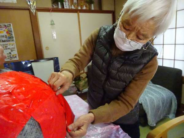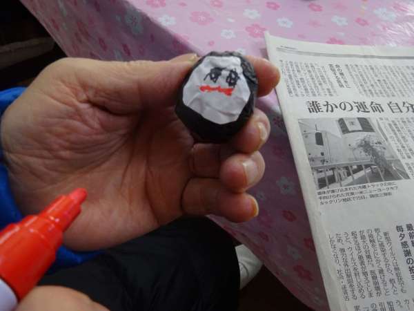 こちらでは・・・同じように青い紙を・・・・ペタペタペタペタ