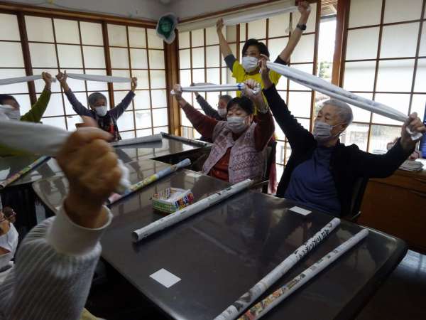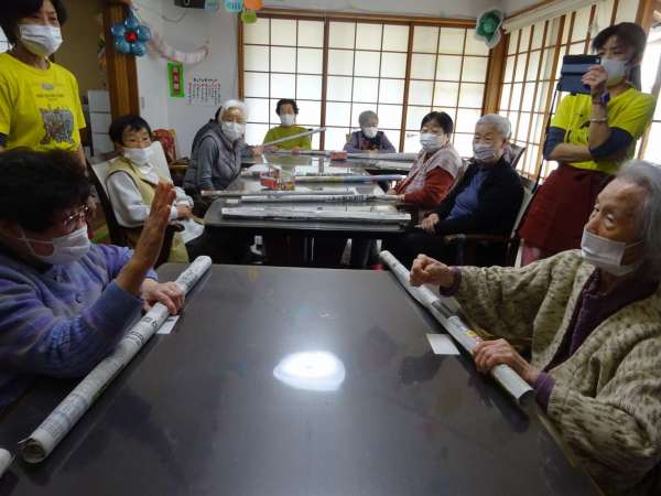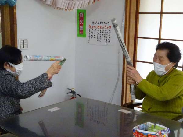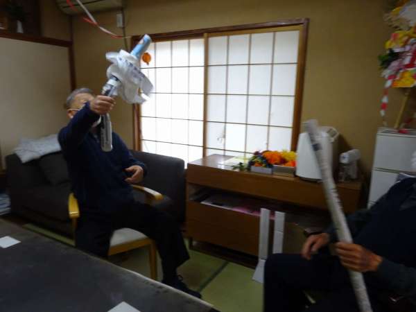 新聞紙の棒が折れやすいのでみなさの苦労されていらしゃいましたが・・・