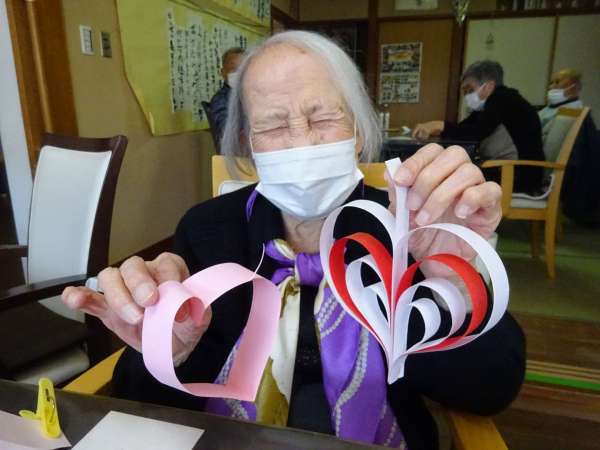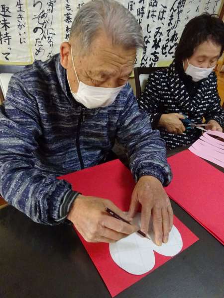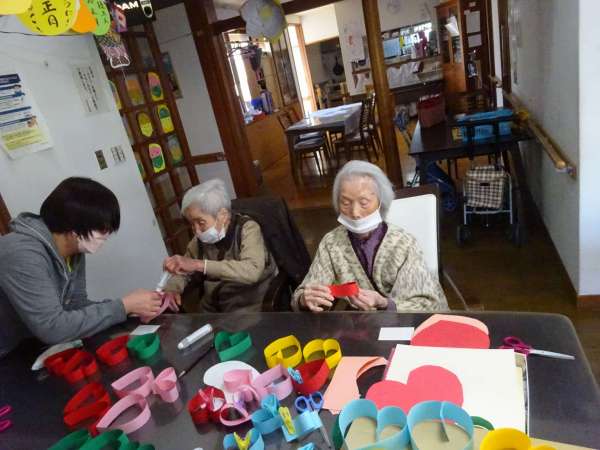 いうことで、本日は、バレンタインの飾りつけ作りを手伝って頂きました