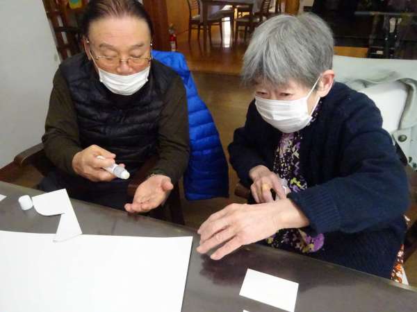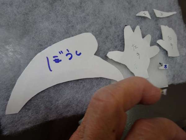 こちらは、切って頂いたパーツを厚紙に貼って頂いてますね