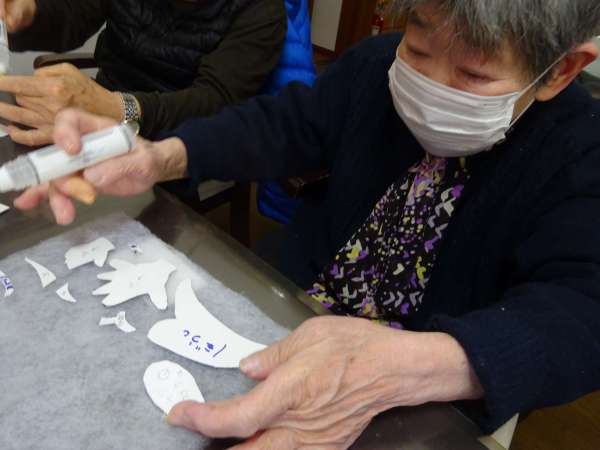 お母様お父様方、糊付けと綿貼りに分かれて連携頂いてますねぇ