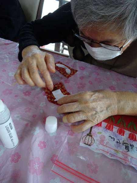 台紙が出来上がれば・・・次は、お雛様に着物を着せてあげます👘