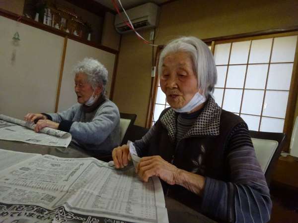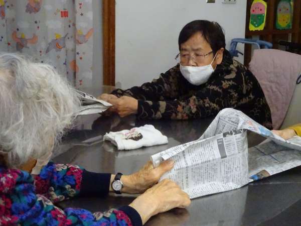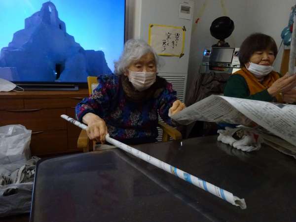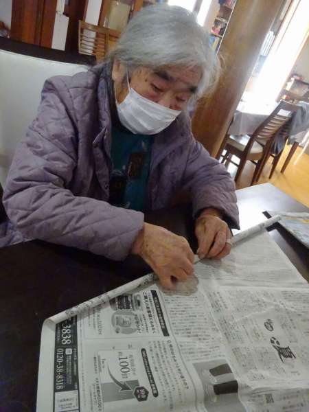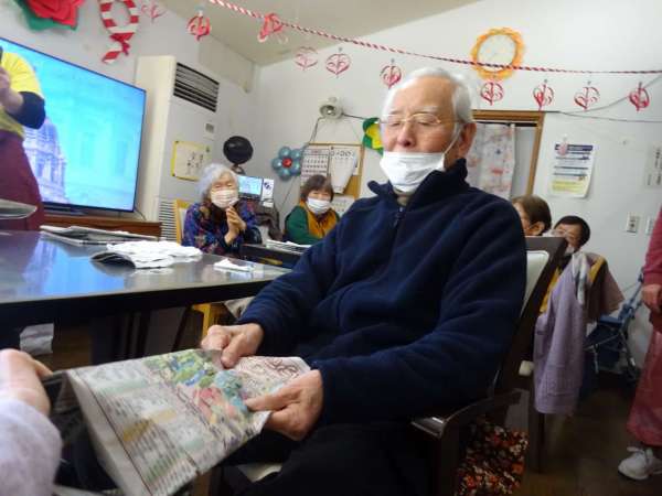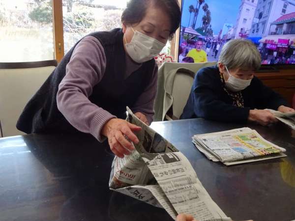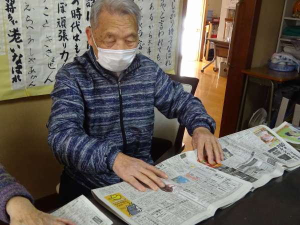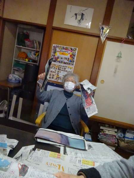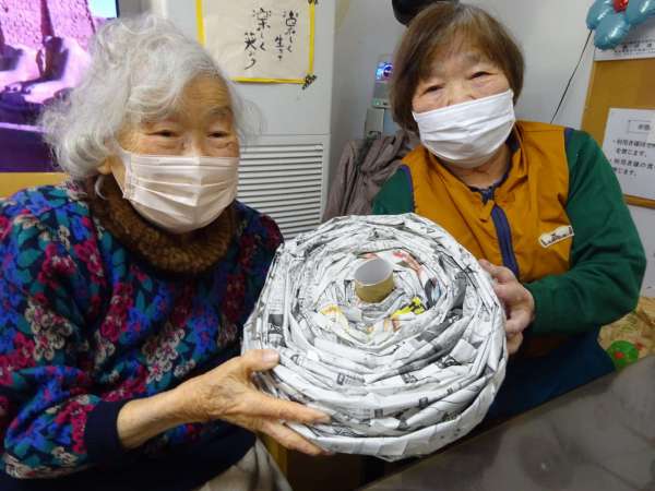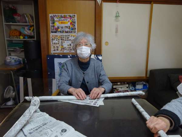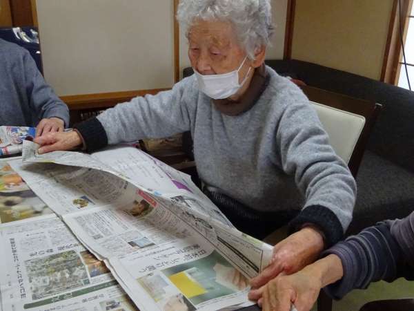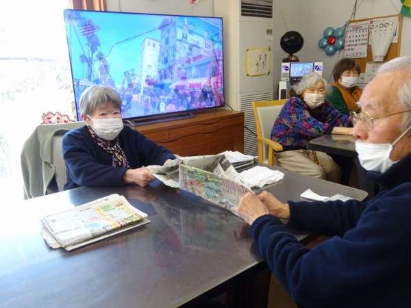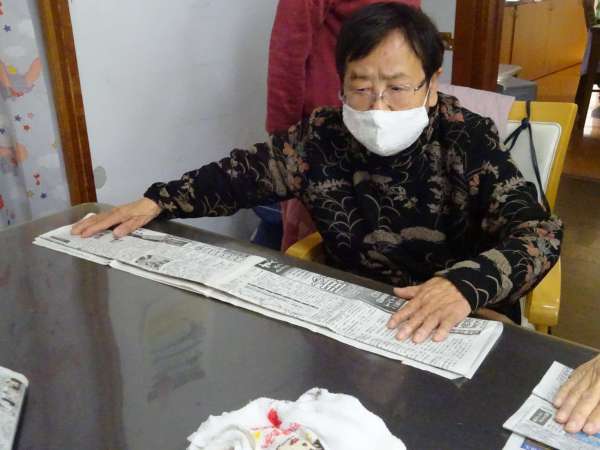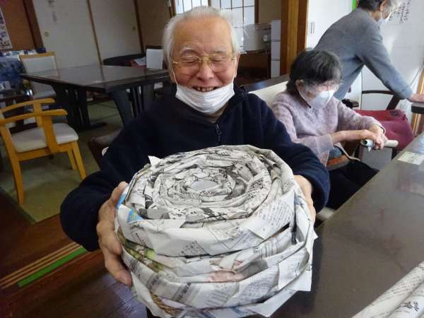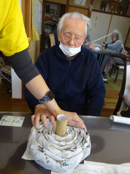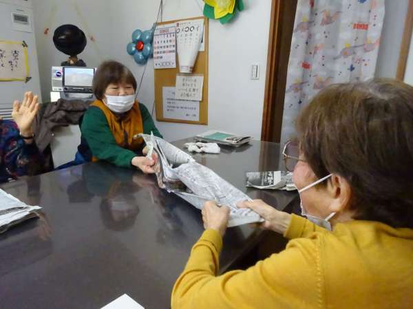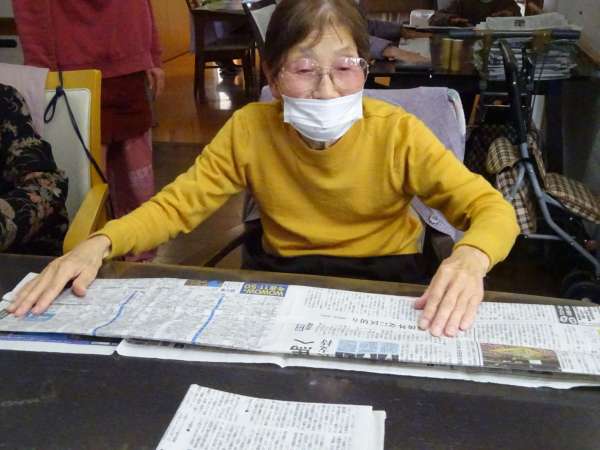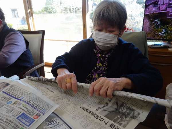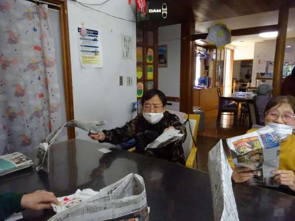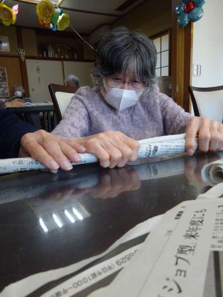 さて、今日のレクレーションは新聞紙を使っていきますよぉ~