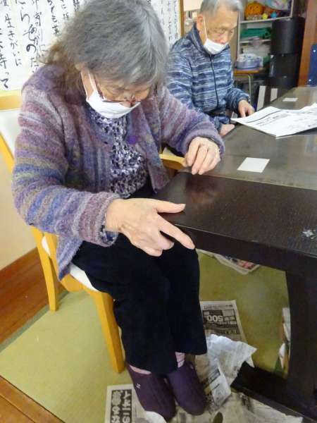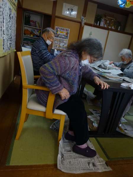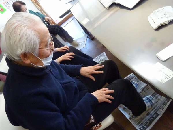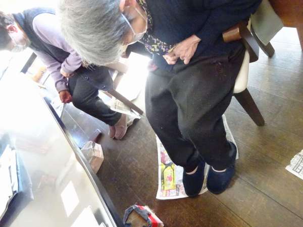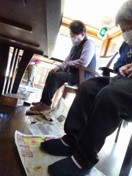 足を使って新聞紙やぶりも、とても盛り上がって皆様一生懸命に破ることに集中して下さっていらしゃいました