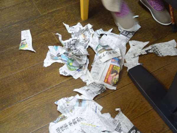 あっという間に新聞紙が、真っ二つ切れてしまいましたねぇ💦