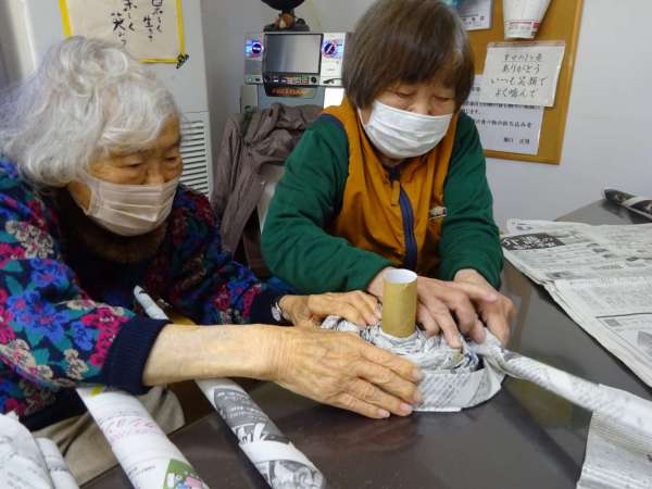 沢山、沢山 巻いた新聞紙を使いますよぉ