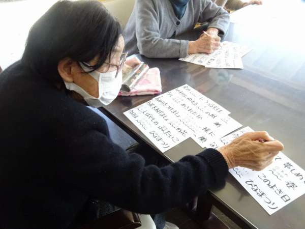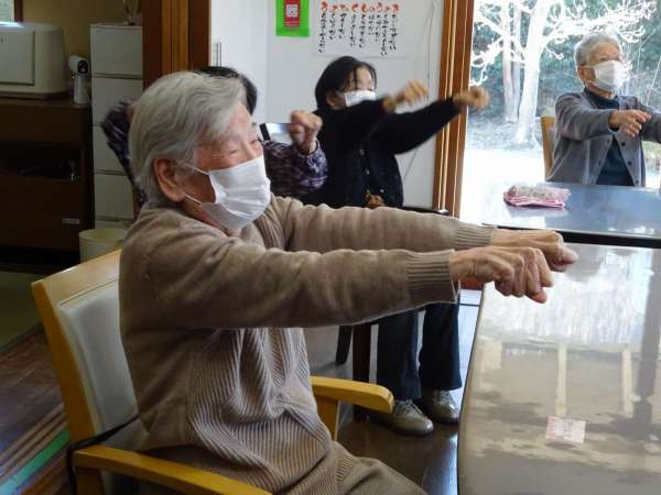 午前中はこうして、挨拶から始まり、脳トレや体操、機能訓練をしながら過ごします