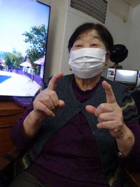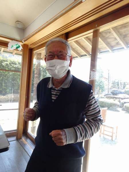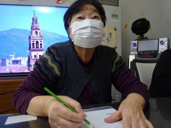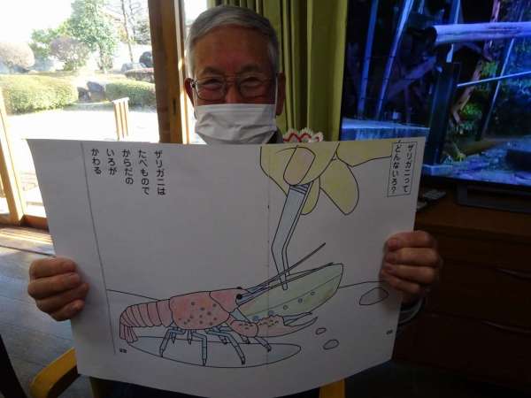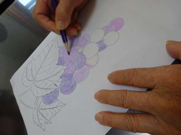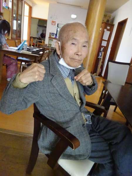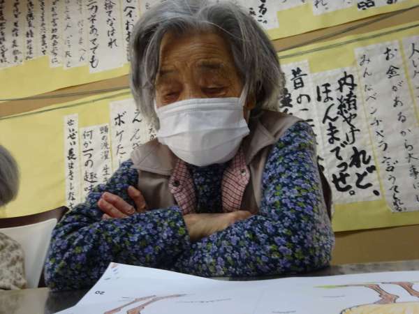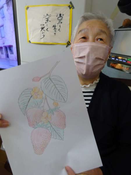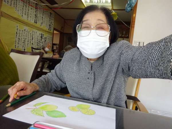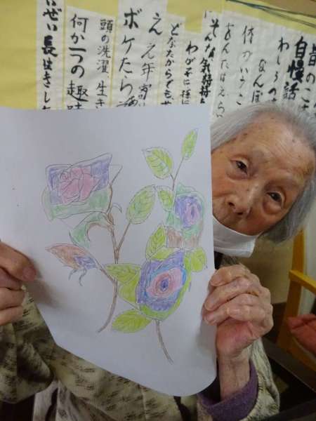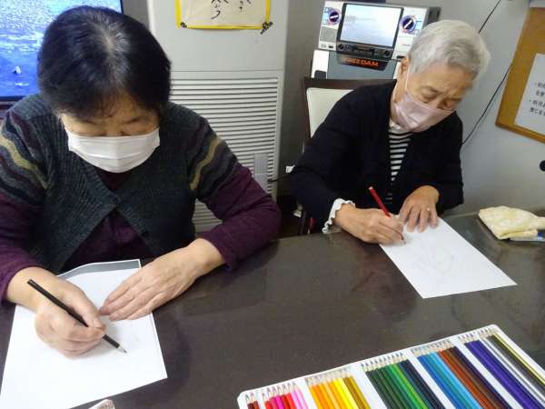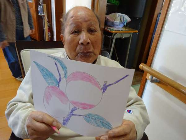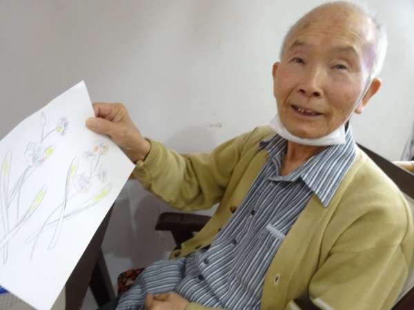 スタッフが話しかけても、塗り絵に夢中なお父さん