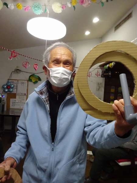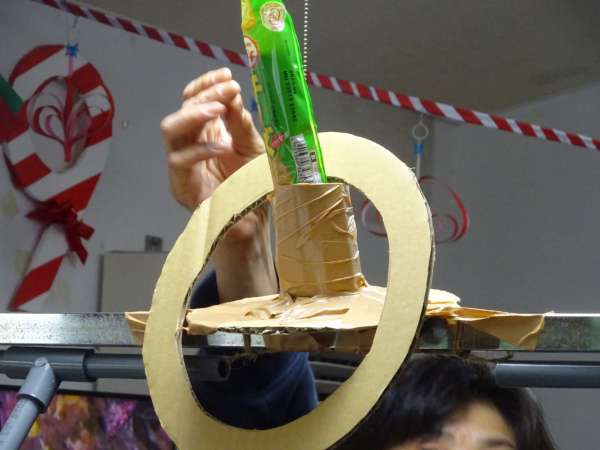 上のお写真は、お昼休みにお父様と一緒に「輪投げ」の道具を制作して完成した時のお顔です