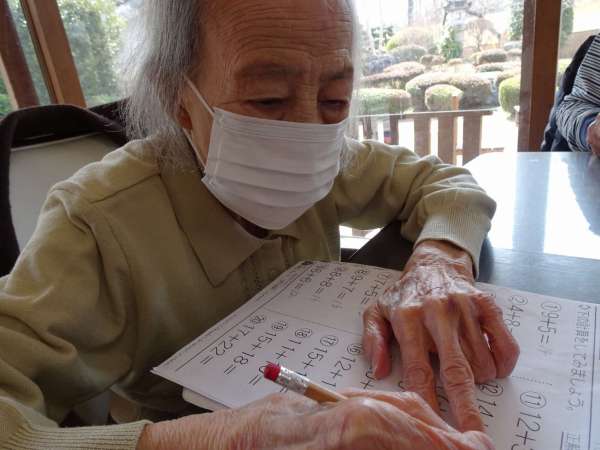 望みの幸望庵では、午前中に体操、機能訓練をしていますが、それと同時に『計算問題』をしております