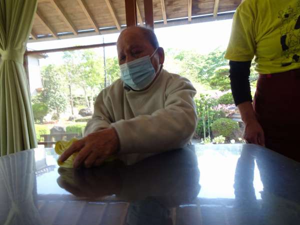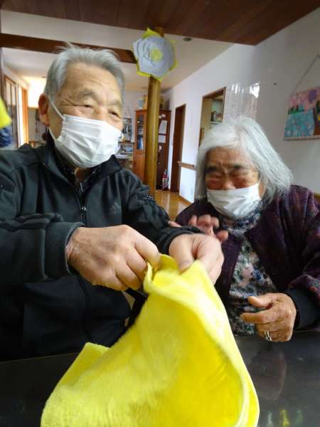 ご夫婦でタオルのバトンパス