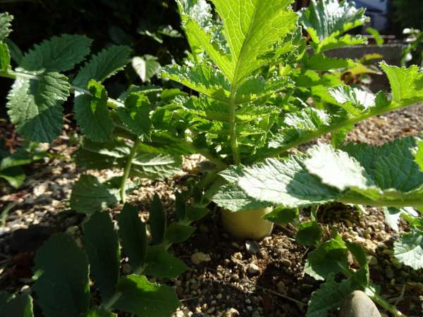 望みのお庭に美味しそうな大根が出来ているのを発見