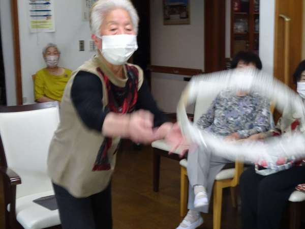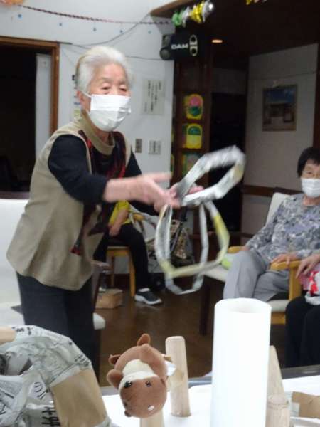 今日のレクリエーションは何の日かと言いますと、輪投げでございます(^_-)-☆