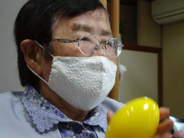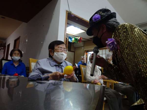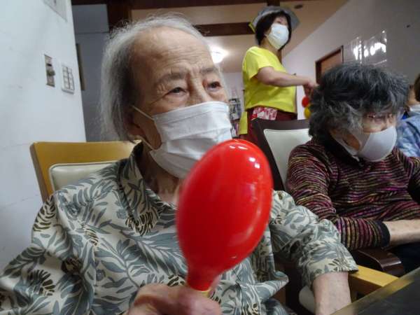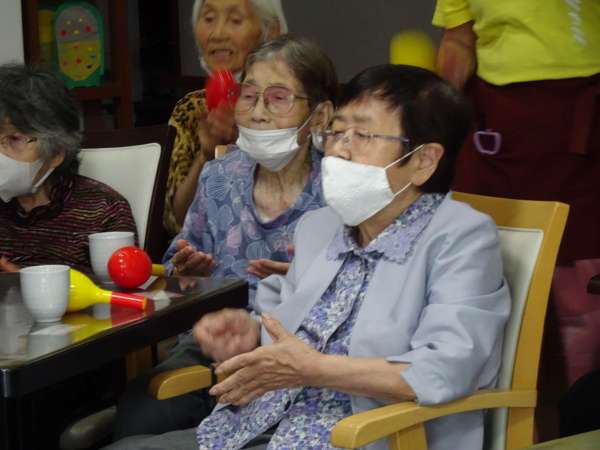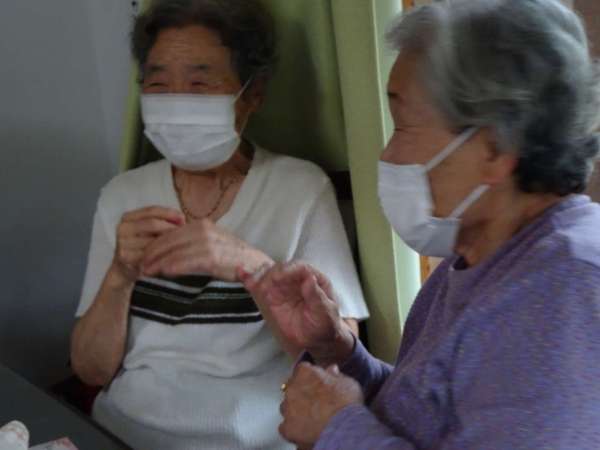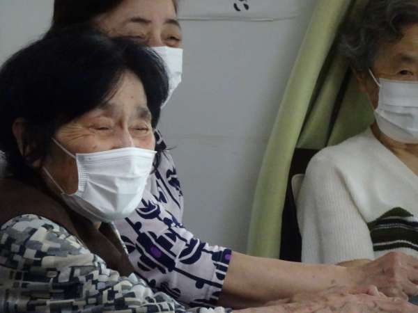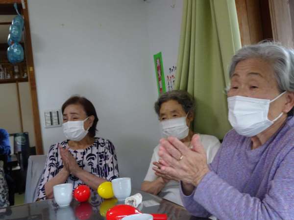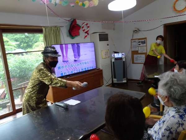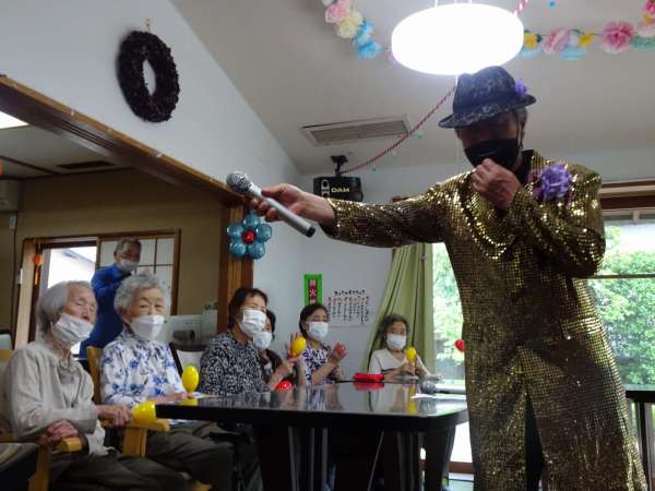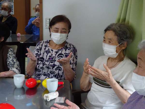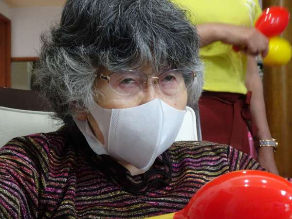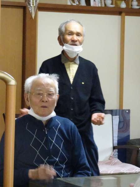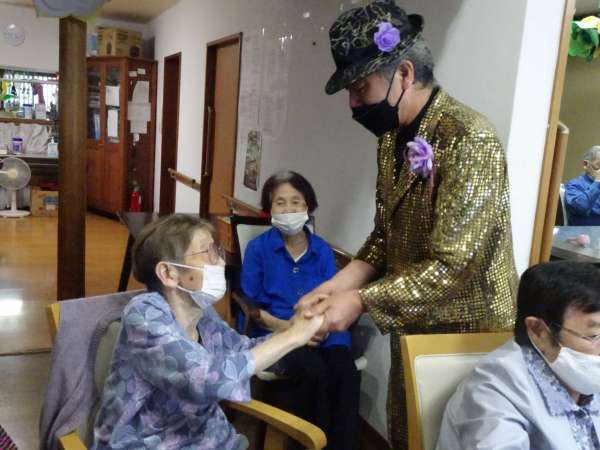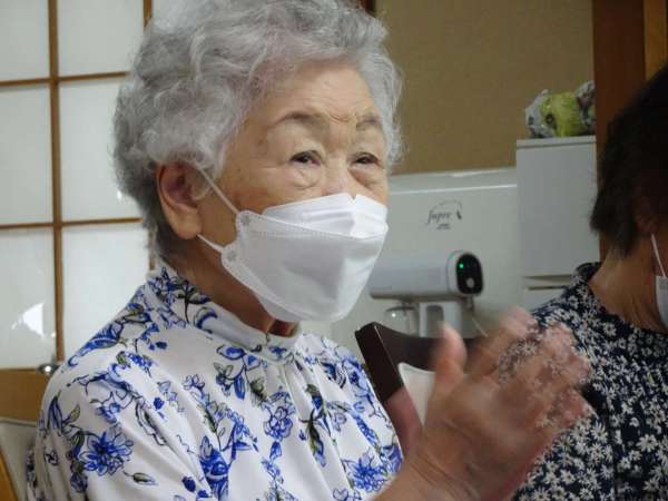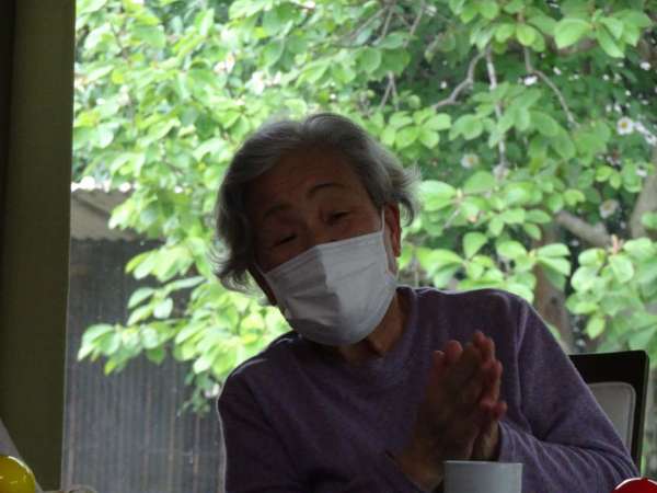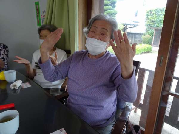 お母様の大好きな「橋幸夫」の歌を歌って下さり、大喜びのお母様うれしい顔手 (パー)