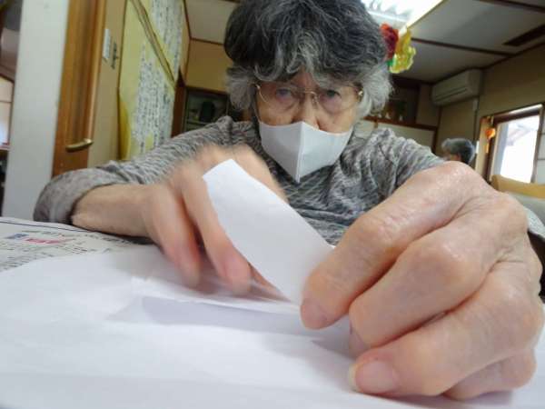 半紙をちぎる作業だったのですが、単調な作業だったため、黙々とやられている皆様を見てスタッフが≪契り≫という歌を選曲