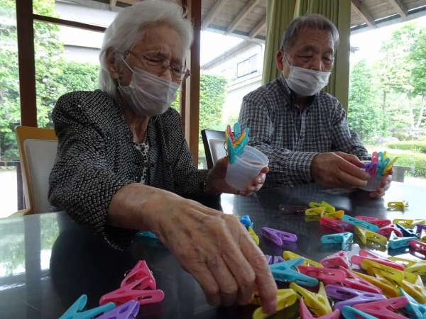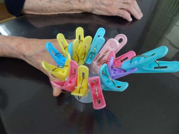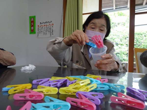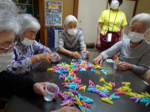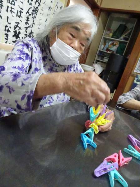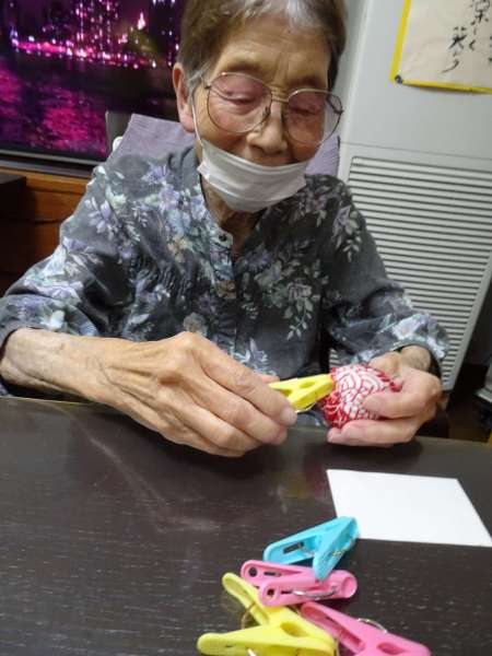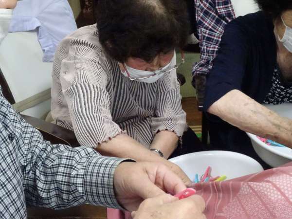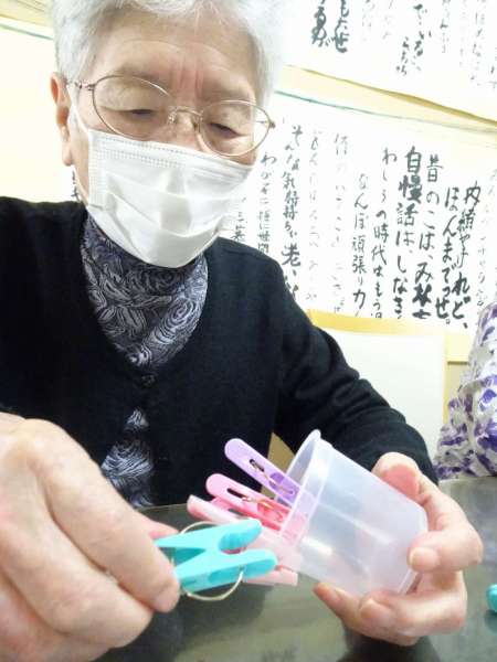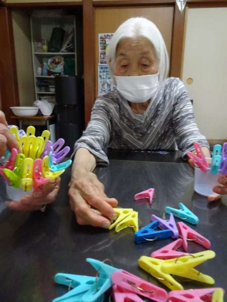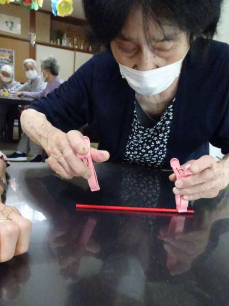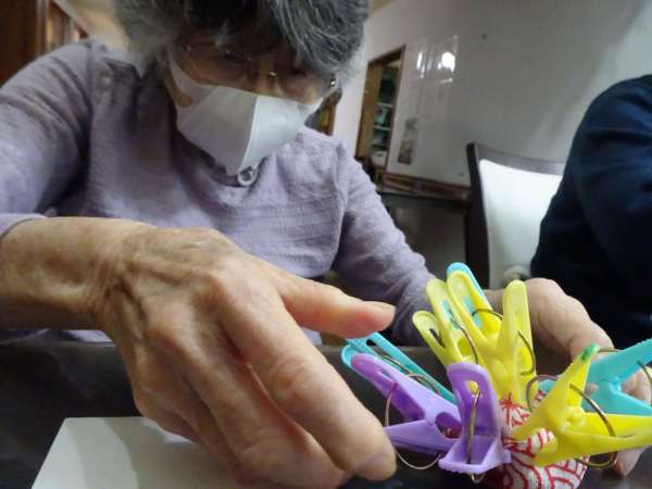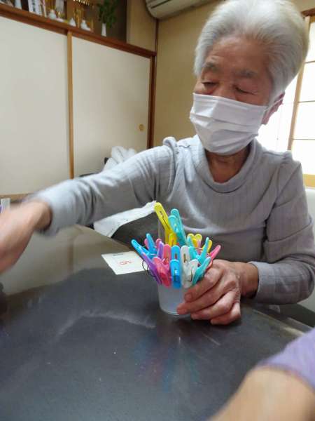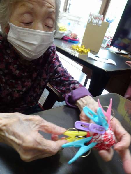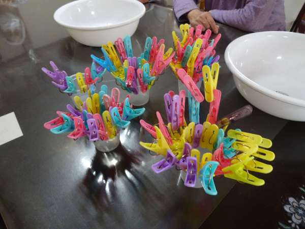 同じく、1分間で、どれくらい洗濯ばさみがつけられるか( ^ω^)・・・