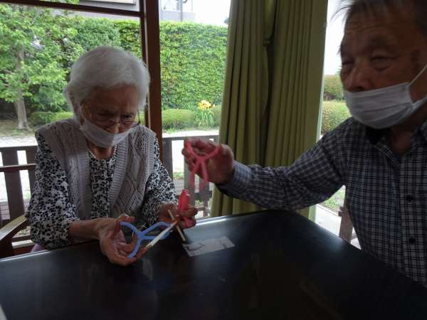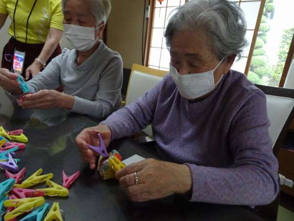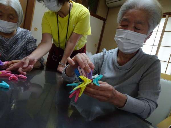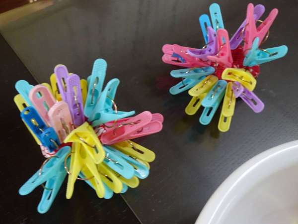 洗濯ばさみを使って・・・次々に物をパスし、運んでいただくゲームです