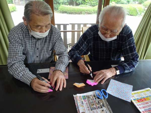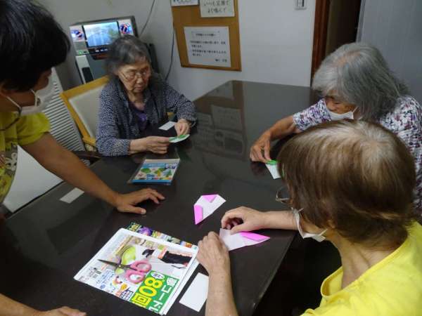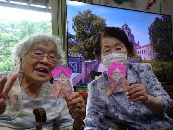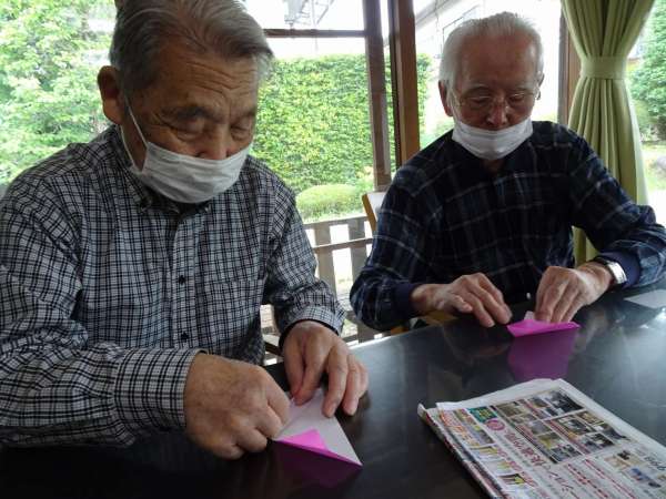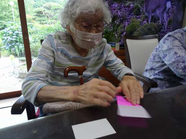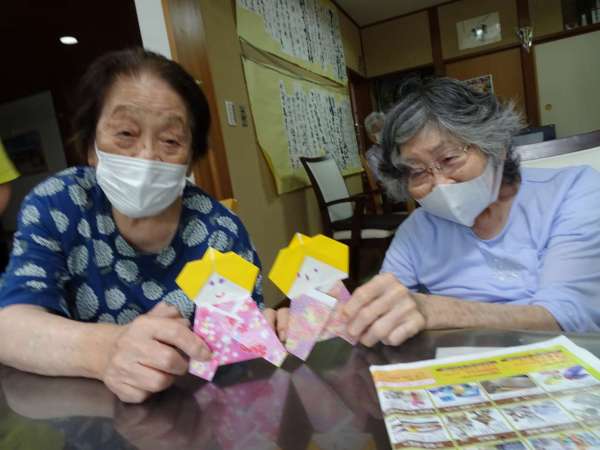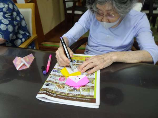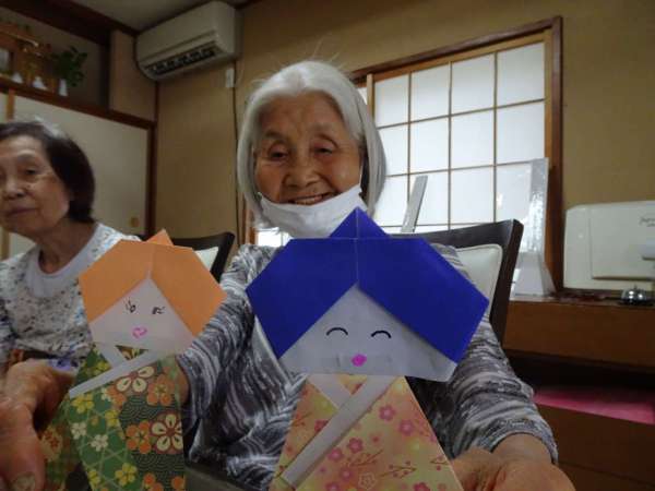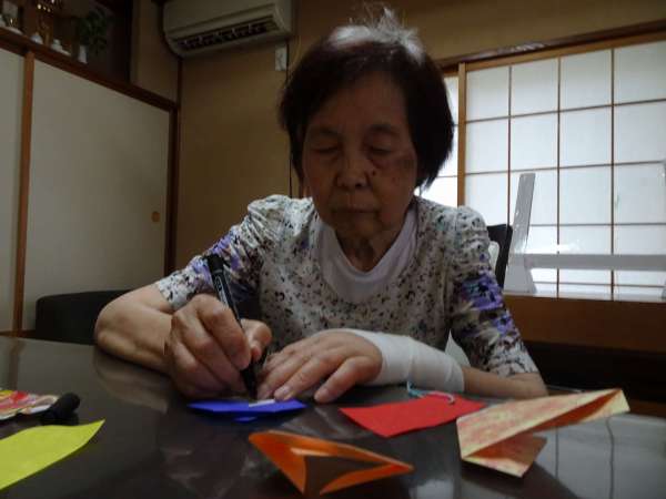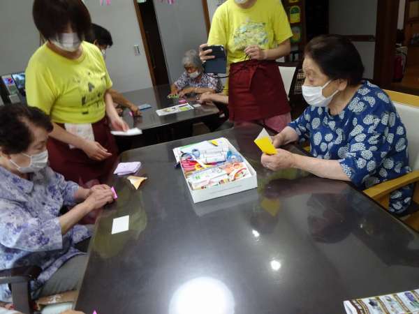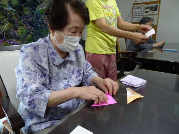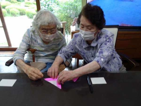 お母様、助け合いながら織姫のお顔を折っていきました