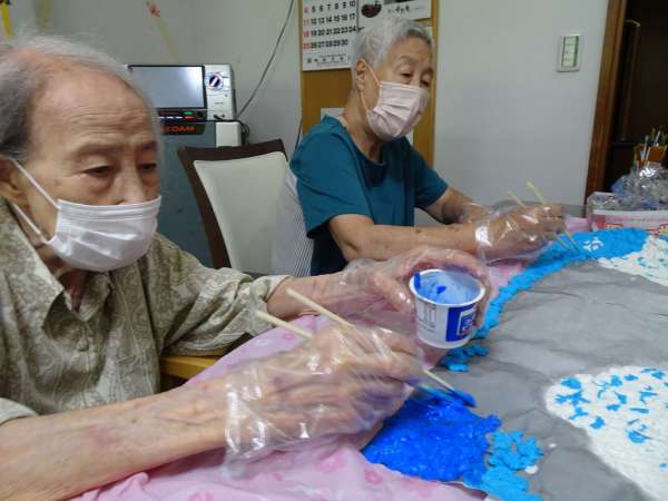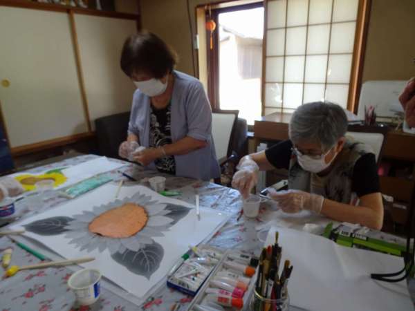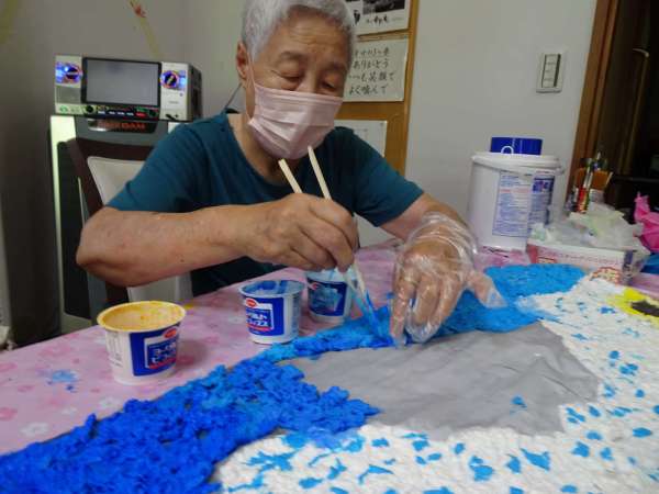 皆様、良い色を出すため一生懸命に混ぜて下さいました