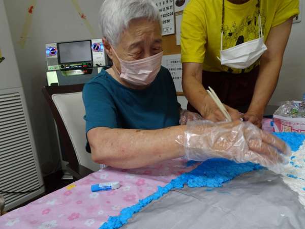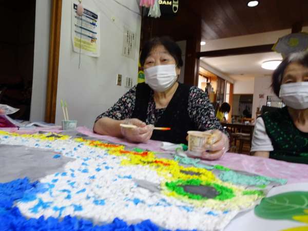 広い空を作って下さっているチームのお母様方は何回も紙を破いたり色を作ったりとても大変なところでしたが