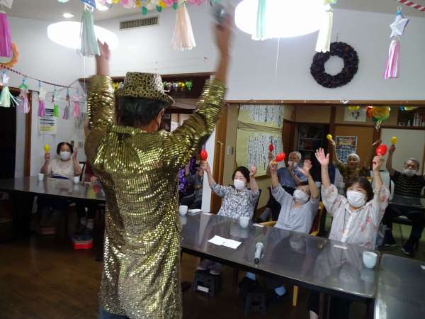 歌につられて身体が自然に動き、良い運動にもなっている様子