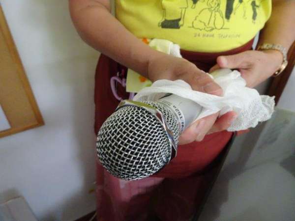 マイクも使用するごとに、消毒しました