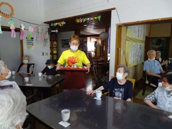 おやつには、七夕用の☆星に願いをゼリーです☆