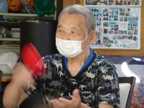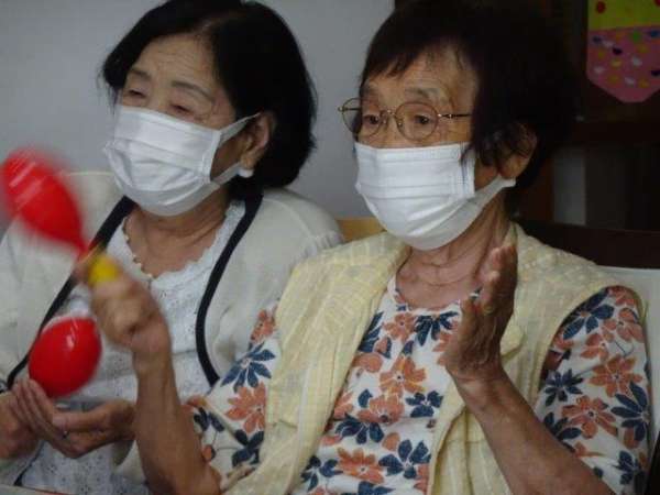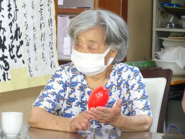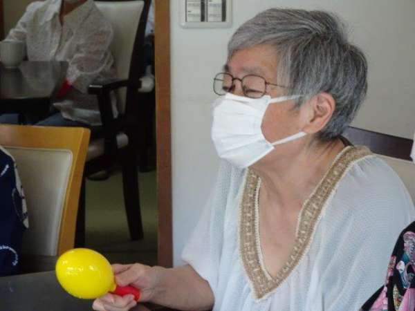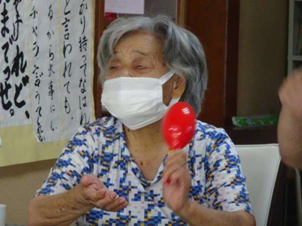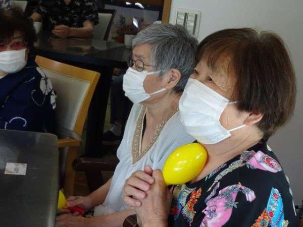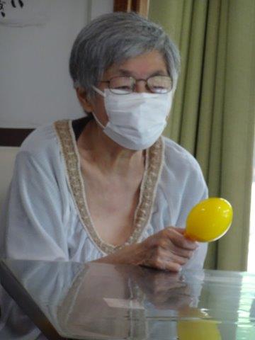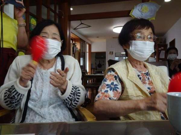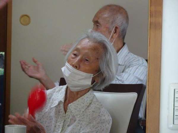 ピーポイントでお好きな歌が入り嬉しそうなお母さん