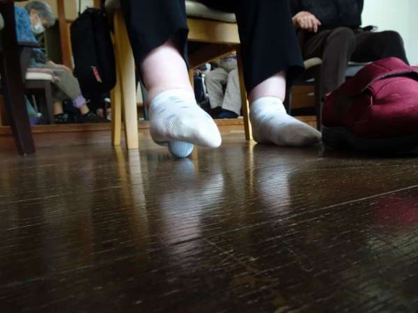 ゴルフボールで足の裏側を刺激する体操をして頂きました