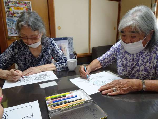 もう半分の方々は、夏らしい塗り絵を楽しんでいてくださいました