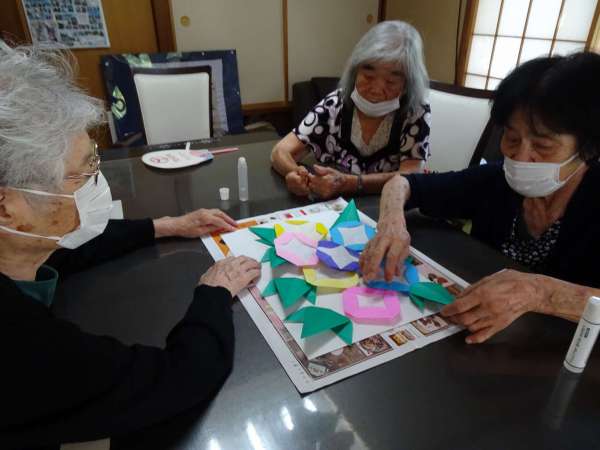 最後に周りの方と協力して、台紙に貼り付けていきましょう(*´ω`*)