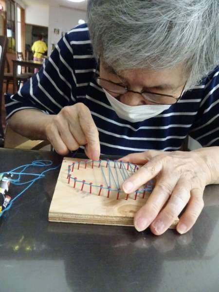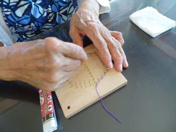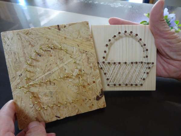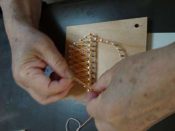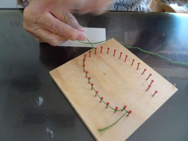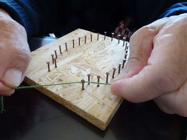 板に色々な形になるようにくぎを打って糸を巻き付けていくものです
