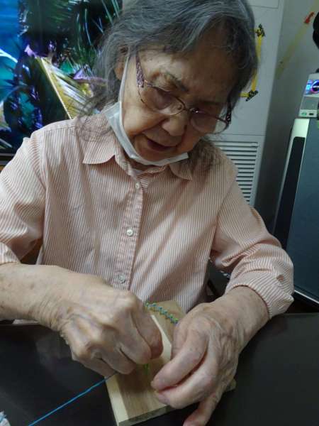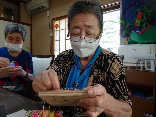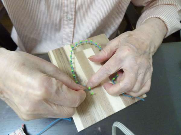 細かい作業で、糸が外れないようしっかり押さえな風らの作業をして下さっております