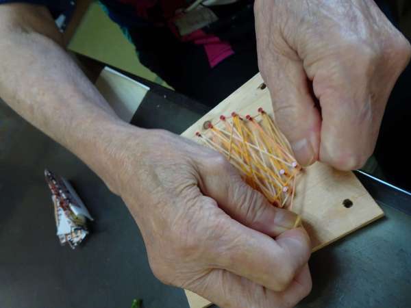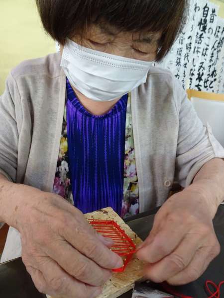 リクレーションでは「ストリングアート」なるものに挑戦です