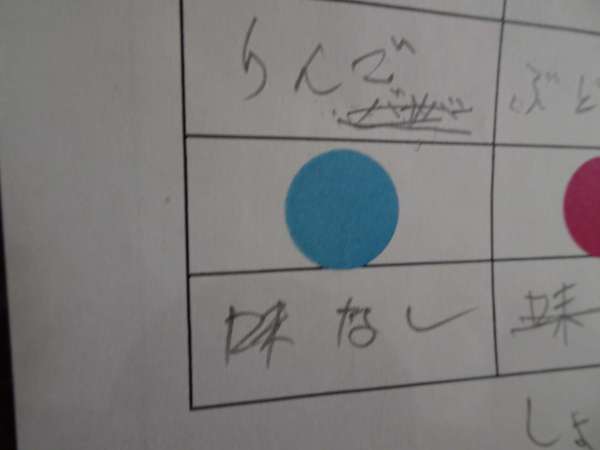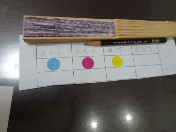 一つずつ食べて、同じ色のマスに答えを書いて下さい
