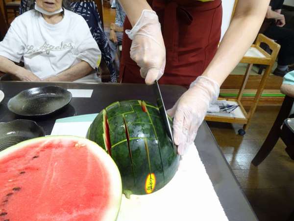 皆様が食べやすいように、スイカのカットに一工夫ネットにより検索致しました(笑)