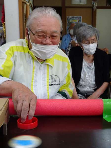 ゲームの途中に、沢山のペットボトルの蓋こちらも一緒に相手のゴールに入れて下さいね