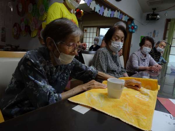 コップの中にはお水も入っておりますのでこぼさぬようバトンを渡してくださいね