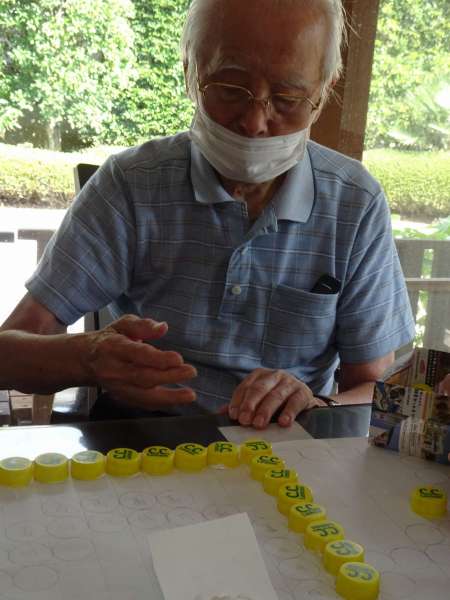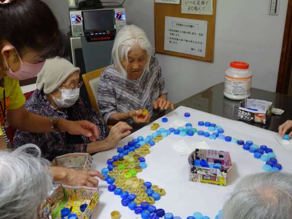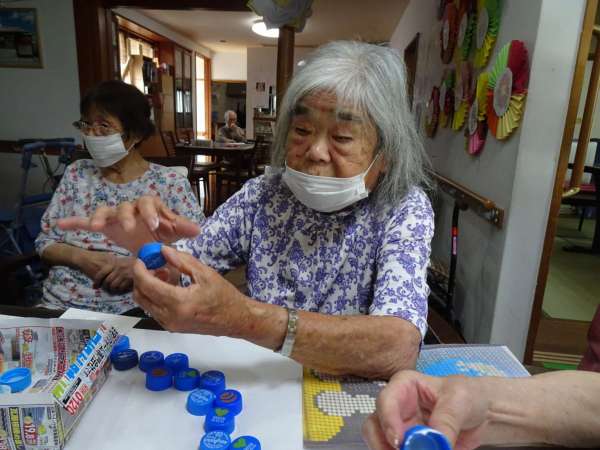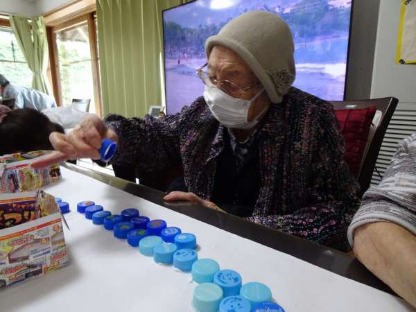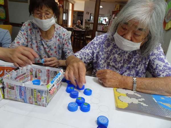 指定された色のついたキャップを並べていきます