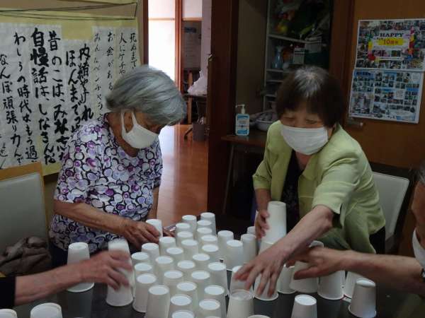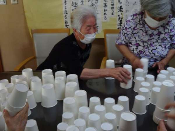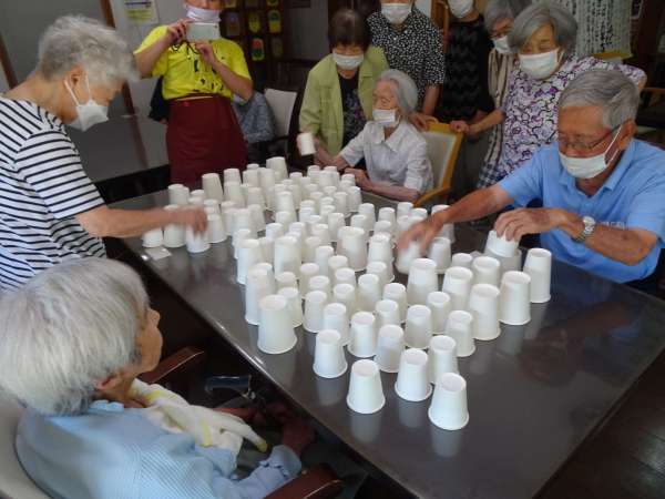 レクリエーションでは、「紙コップ」を使って遊んでみましょう